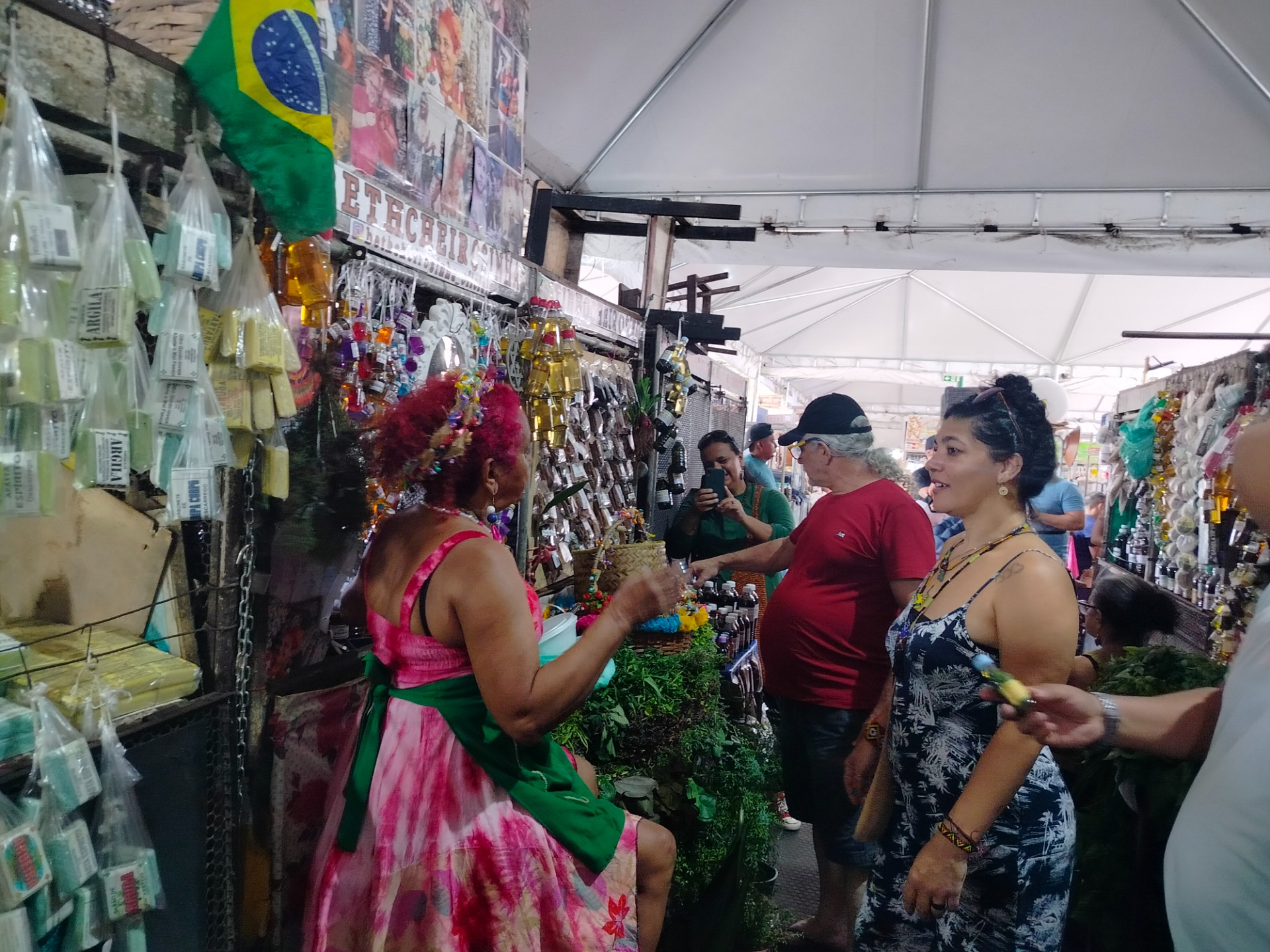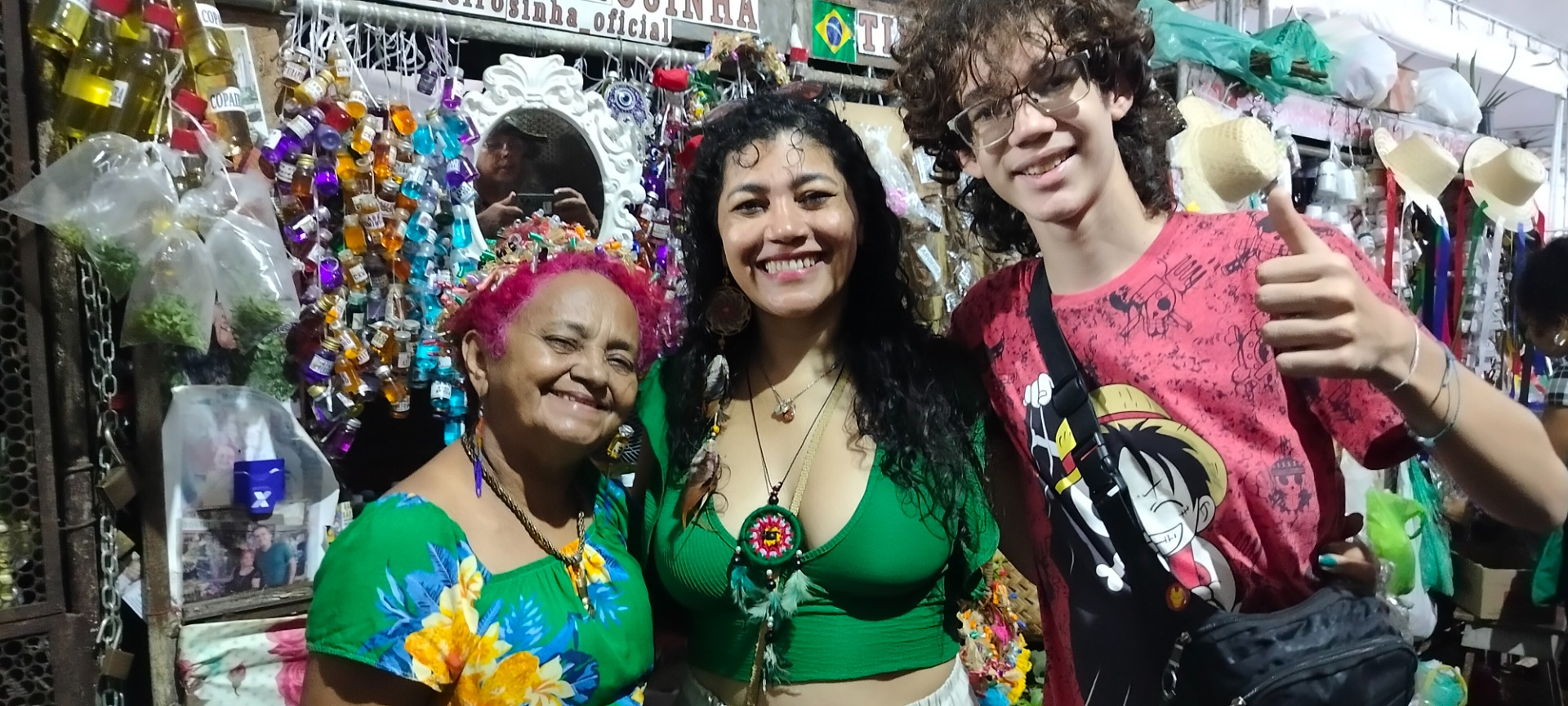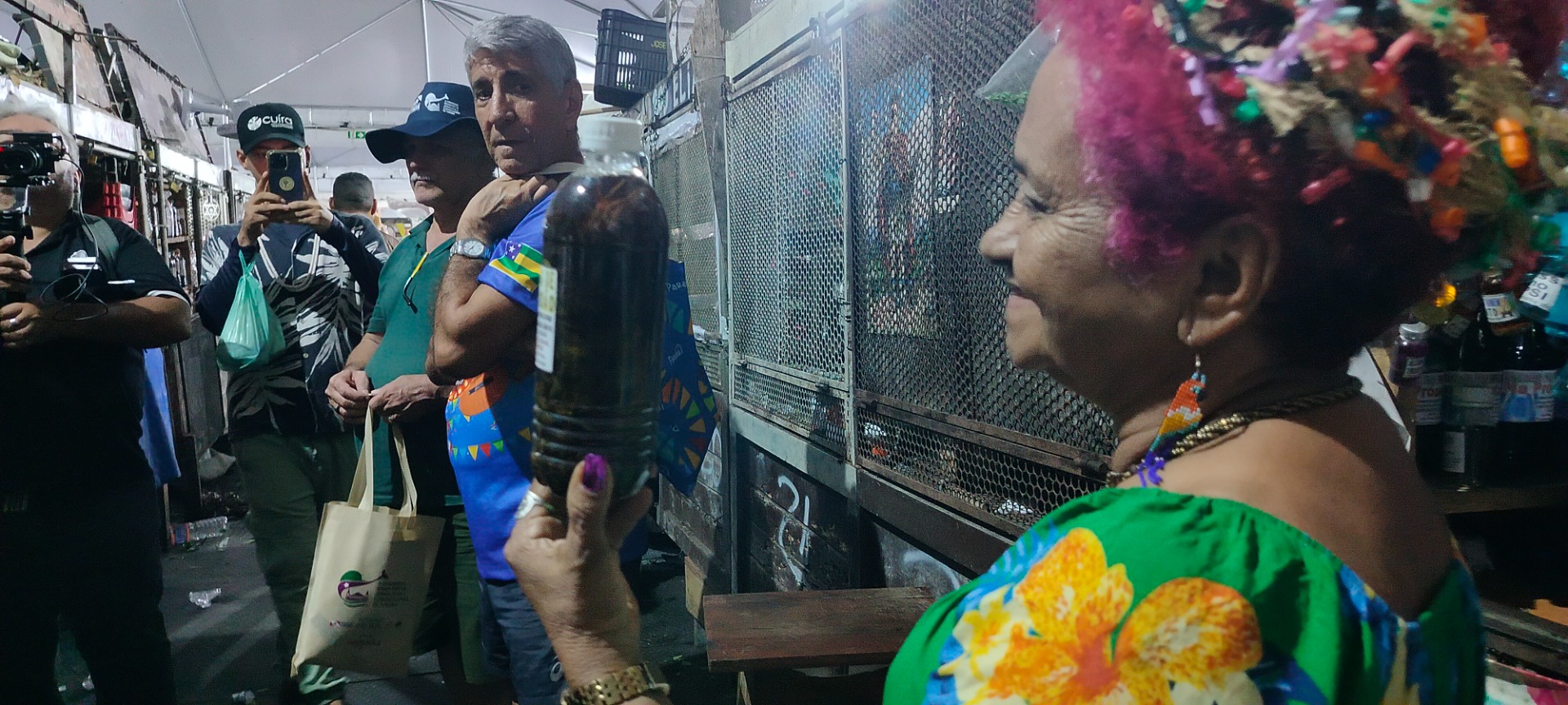 Entre tantas cenas marcantes nos corredores do Ver-o-Peso, uma chamou atenção pela força simbólica e espiritual: o jornalista Hélio Costa, da Paraíba, recebeu das mãos da lendária Beth Xeirozinha não apenas um banho de ervas, mas uma bênção ancestral. Com suas rezas sussurradas entre folhas verdes e cheiros intensos, Beth — patrimônio vivo do mercado — compartilhou seu saber com respeito e ternura, como quem rega uma planta rara.