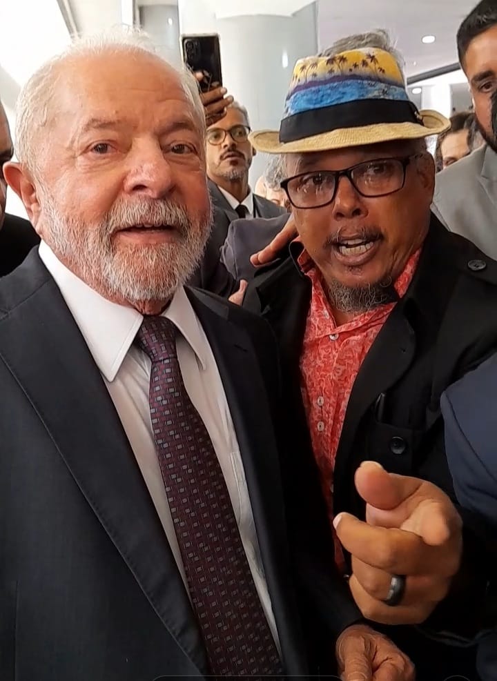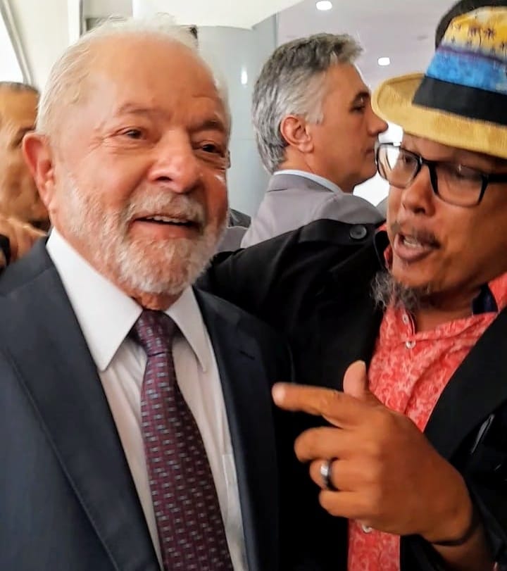 Entre as milhares de imagens que circulam nesta COP, uma merece destaque especial: a foto de uma ocasião anterior em que Robson Messias esteve com o Cacique Raoni.
