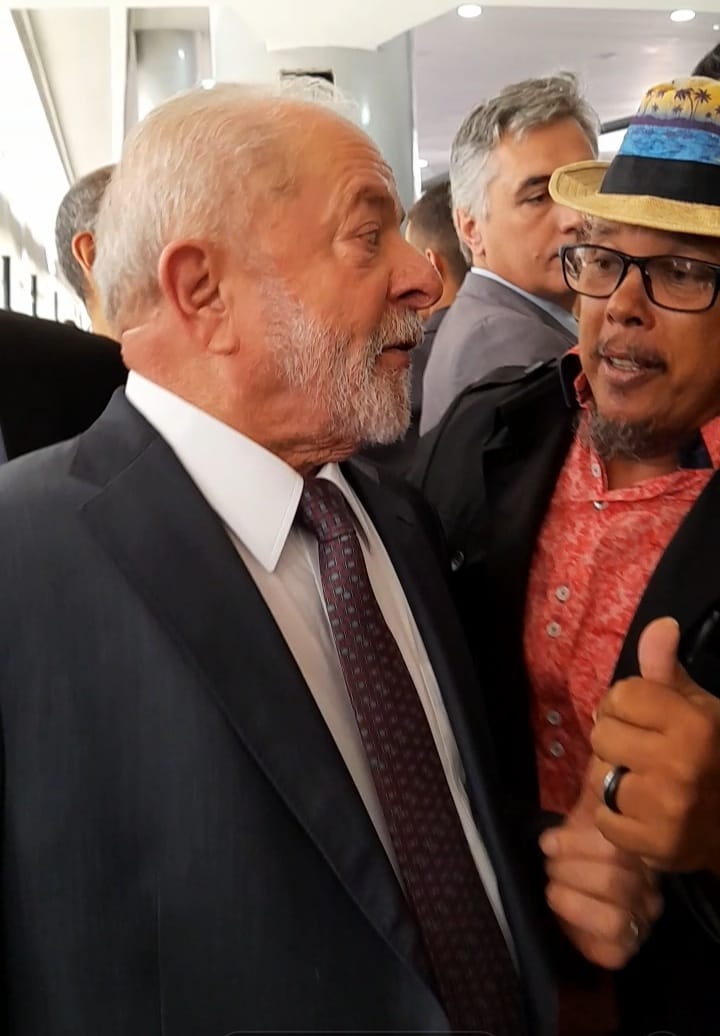 Com firmeza ancestral, criticou publicamente iniciativas de exploração petrolífera próximas à costa amazônica e enviou um recado direto ao Governo Federal — um gesto de coragem que ecoou dentro e fora dos espaços oficiais do evento.